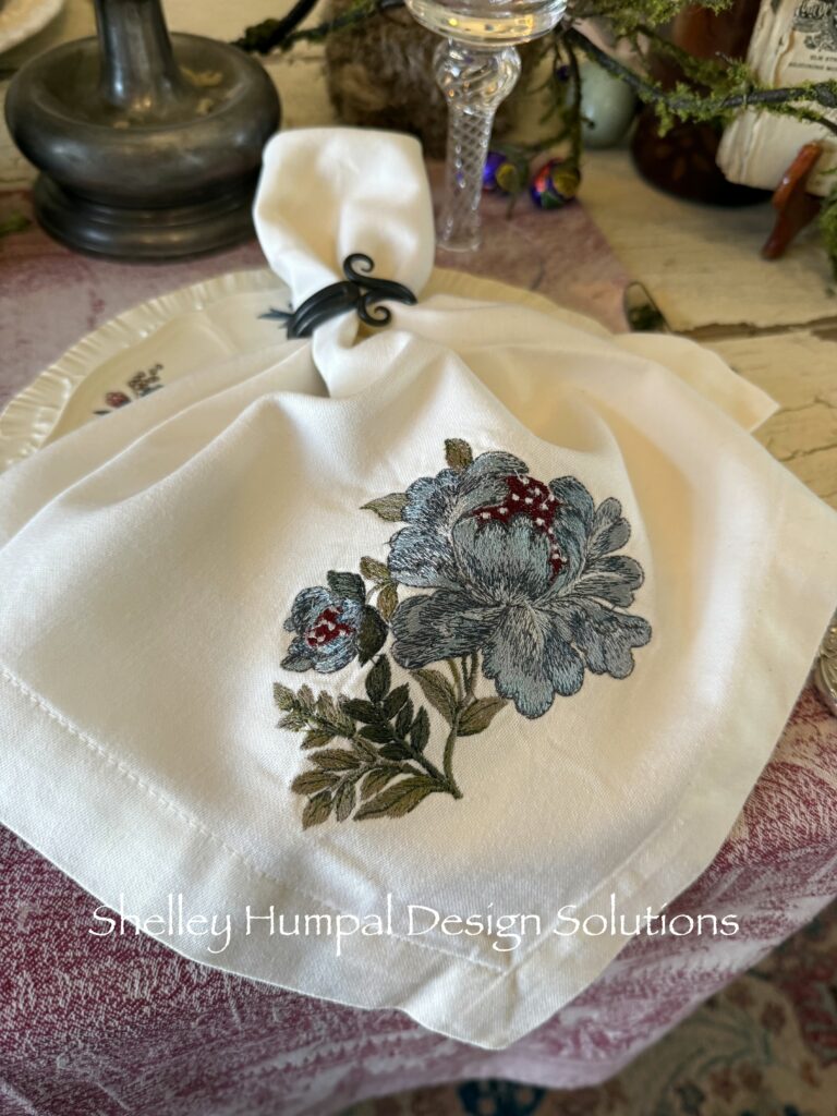 These napkins are gorgeous. I made them a few years ago on an old Pottery Barn plain napkin. Got to love the Bernina!!!