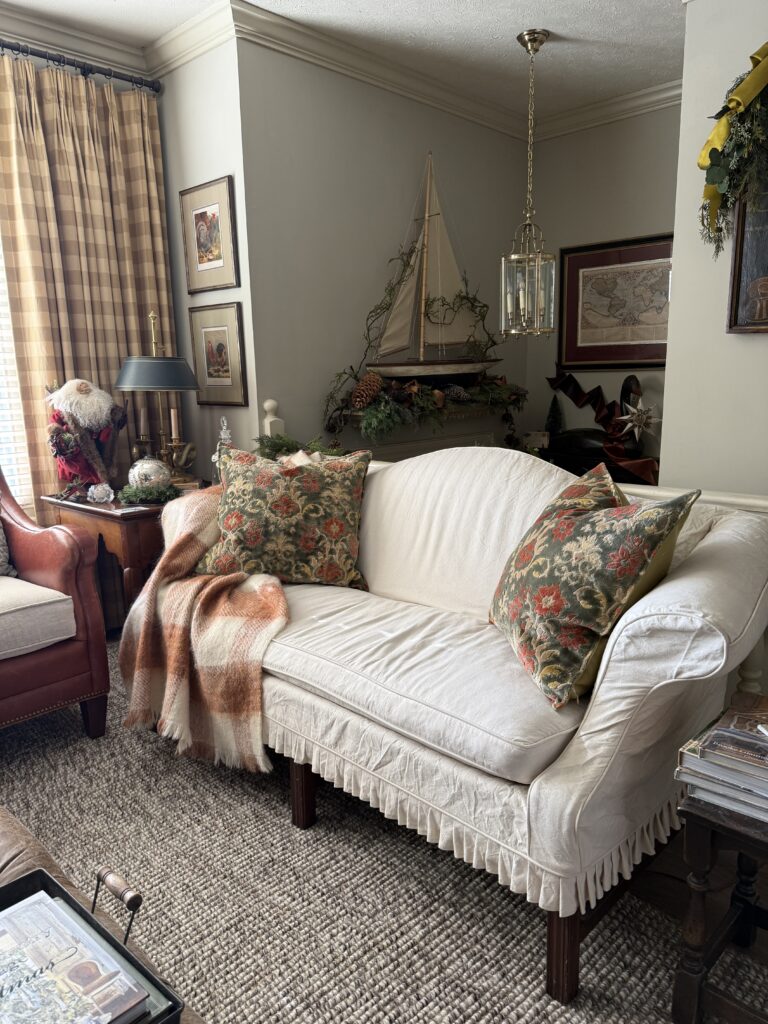 Home now, I got the Bernina out, and in a couple of hours I had the pillows done. I love to make pillows. They are quick and easy to make and I have made some fun ones, for both clients and myself over the years. But these pillows are so special. is it because of the sentiment and every time I look at them, I see mom wearing her skirt? I don’t know, but these are my favorite pillows ever, and so, I will love them forever. Even on my humble canvas slipcovered sofa!